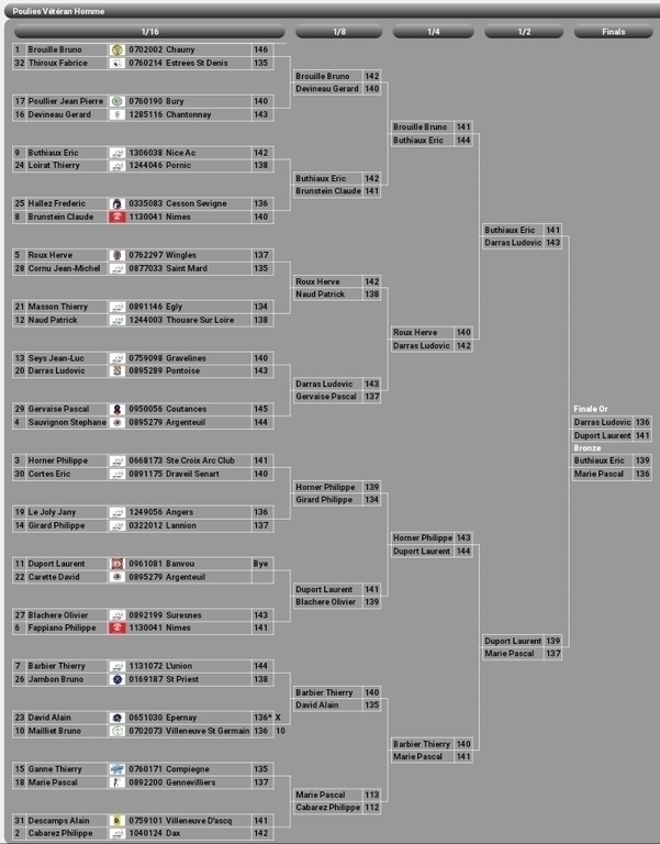 Dimanche après midi, par une journée trės ensoleillėe et une tempėrature frolant les 33°, place au tir de qualifications. Jean-Pierre se classe à la 23ème place avec 325 pts à l'issue de la 1ère sėrie pour prendre la 17ème place du général en réalisant 338 pts lors de la 2ème série lui assurant une place pour les duels du lendemain.